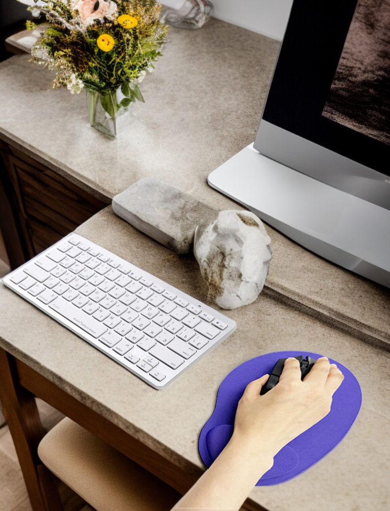 ● 인체공학적 설계의 손목 받침대가 손목 피로를 효과적으로 줄여주어 장시간 컴퓨터 작업 시에도 편안함을 제공합니다.